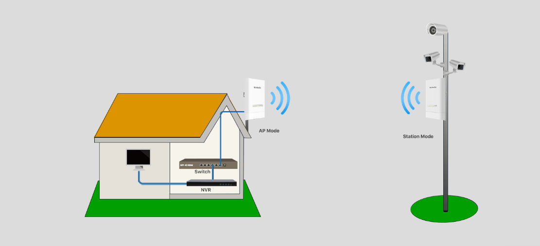 Một chế độ hoạt động ở chế độ AP và chế độ còn lại ở chế độ Trạm để tạo kết nối không dây tầm xa phục vụ giám sát bằng video.