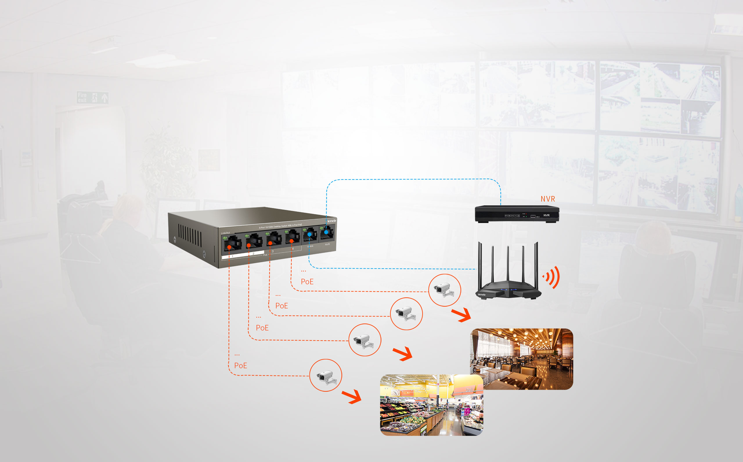 TEF1106P-4-63W trang bị 2 cổng Uplink cùng 4 cổng PoE hỗ trợ chuẩn IEEE 802.3at/af, giúp triển khai hệ thống CCTV dễ dàng và nhanh chóng. Với 2 cổng Uplink, bạn có thể kết nối đồng thời cả Router và đầu ghi NVR vào TEF1106P-4-63W , giúp hệ thống CCTV hoạt động ổn định liên tục trong thời gian dài. TEF1106P-4-63W hỗ trợ công suất tổng lên đến 58W, và tối đa 30W cho mỗi cổng, phù hợp cho các hệ thống CCTV quy mô nhỏ