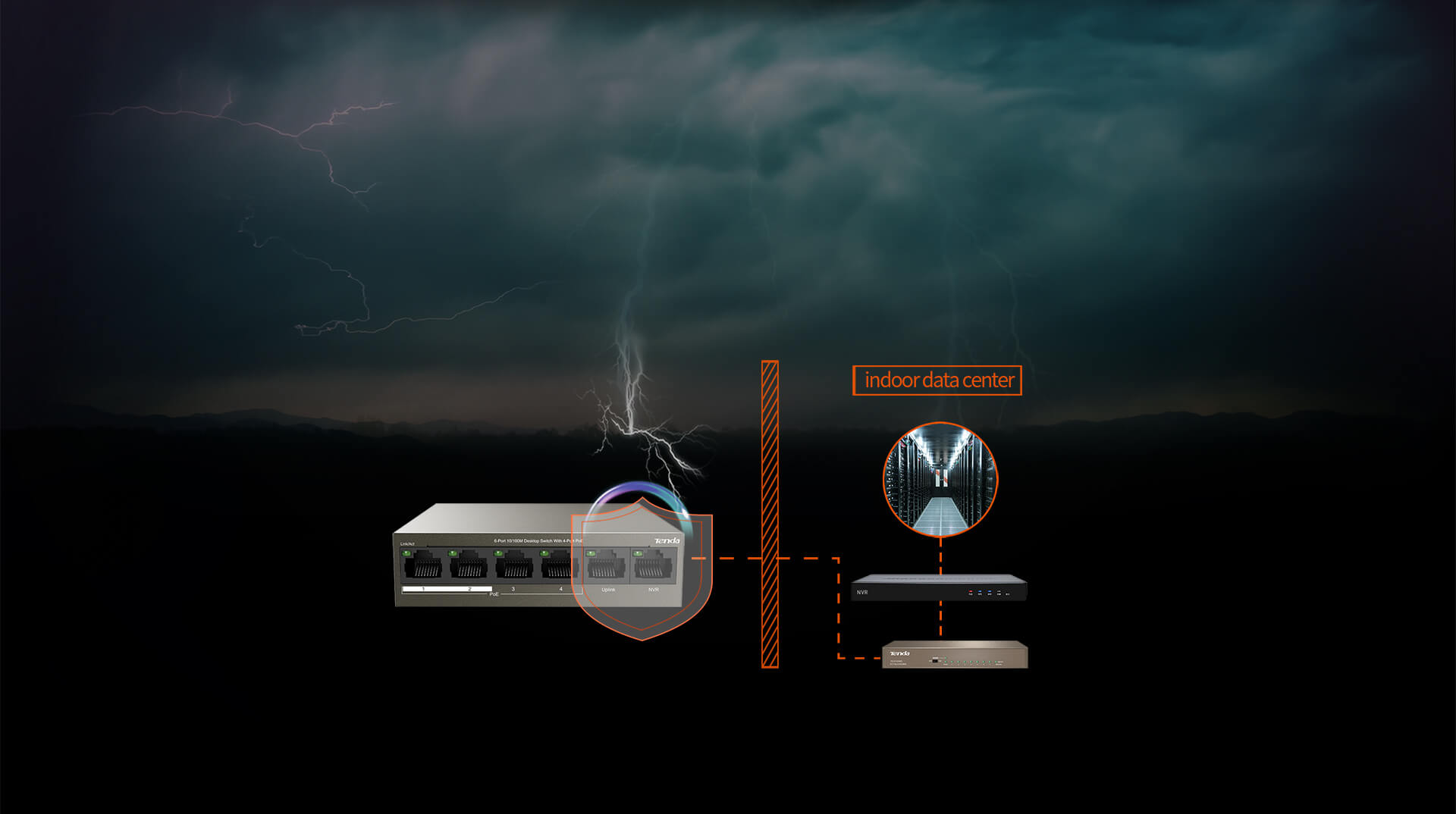TEF1106P-4-63W hỗ trợ chống sét lên đến 6KV cho cổng Uplink , và 4KV cho nguồn, giúp bảo vệ thiết bị khỏi sét lan truyền trong điều kiện mưa bão