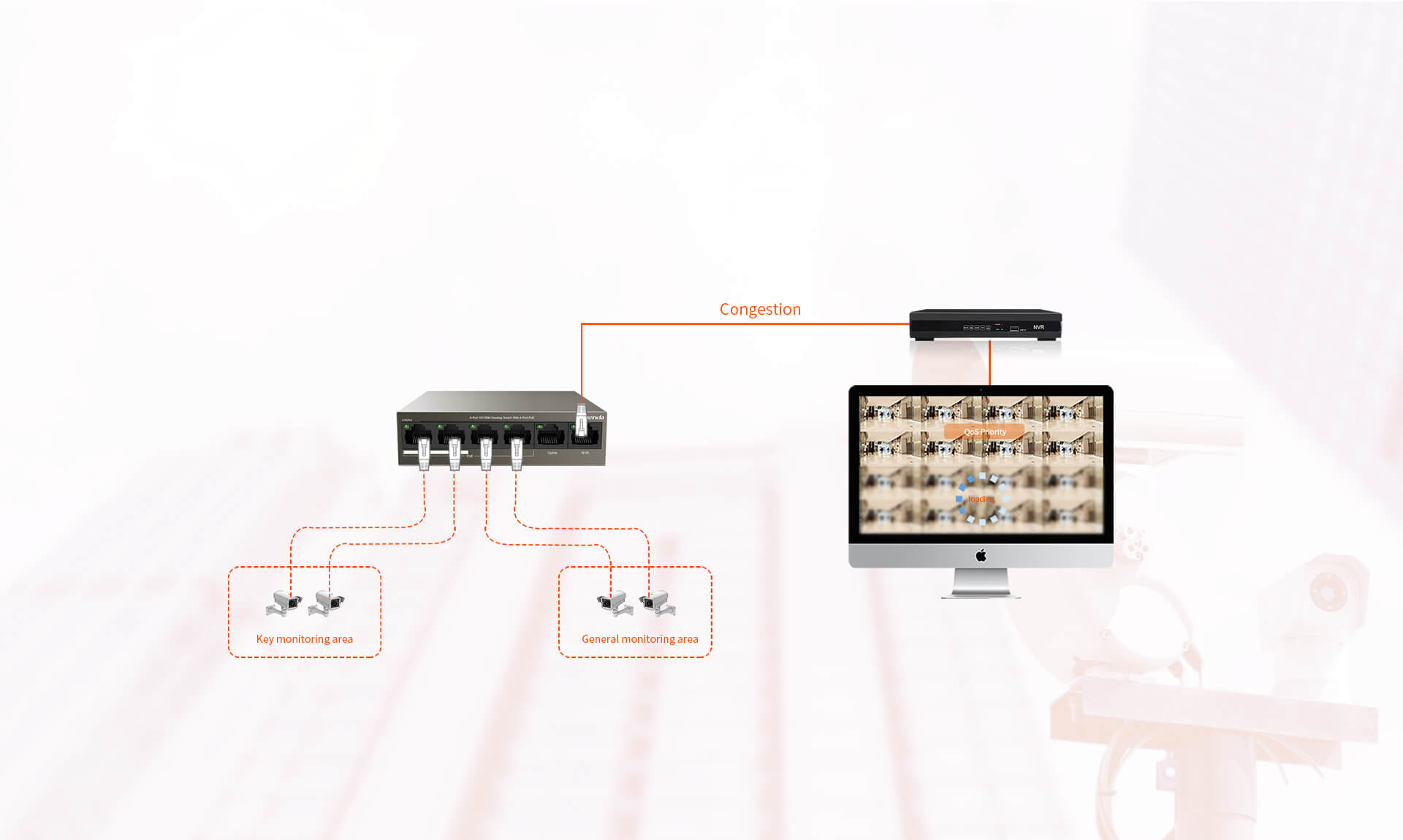 Cổng 1-2 hỗ trợ tính năng QoS, luôn được ưu tiên nếu gặp tình trạng nghẽn mạng, đảm bảo việc giám sát tại các khu vực quan trọng luôn được duy trì ổn định.