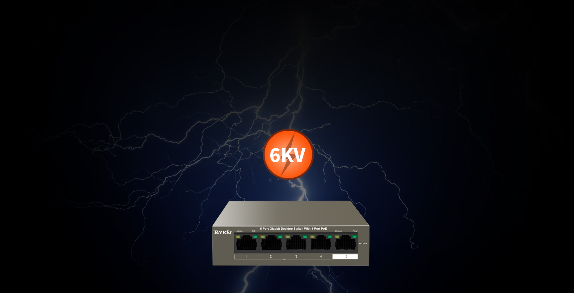 Trong dự án thực tế, AP hoặc camera thường được lắp đặt ngoài trời hoặc trên các vị trí cao, điều này cũng làm tăng khả năng bị sét đánh của camera và switch PoE. Hậu quả là thiết bị dễ bị hư hỏng hoặc dẫn đến toàn bộ mạng cục bộ (LAN) tê liệt. Dòng Switch Tenda TEF11 có thiết kế chống sét chuyên nghiệp - cổng 6 kv và nguồn cấp điện ngăn sấm sét, với hai cấp độ thiết kế bảo vệ tương ứng, hạn chế sức mạnh của sét từ cáp, tương đương với việc cung cấp cho toàn bộ hệ thống giám sát mạng một hàng rào an ninh. Tiêu chuẩn thử nghiệm cao hơn nhiều so với yêu cầu CE quốc gia. Trong thời tiết giông bão, switch cũng có thể cung cấp dịch vụ giám sát mạng ổn định, đáng tin cậy, bảo vệ việc truyền hình ảnh diễn ra bình thường.