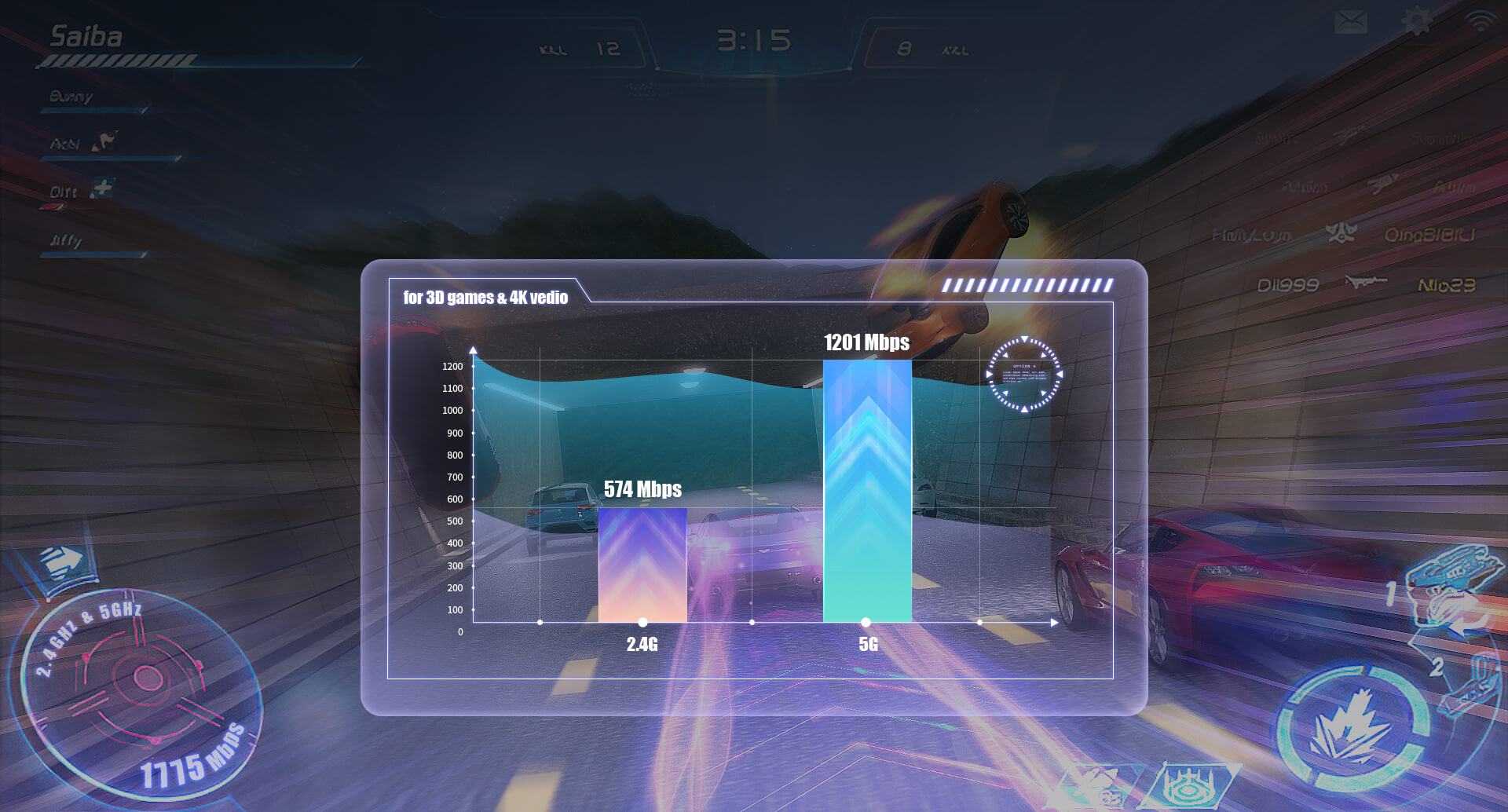 Sử dụng công nghê Wi-Fi 6 tiên tiến nhất hiện nay, sóng 2.4ghz có thể đạt đến 574Mbps và sóng 5Ghz đạt đến 1201Mbps, nhanh hơn Wi-Fi 5 và có độ trễ thấp hơn, phù hợp cho trải nghiệm chơi game và xem phim 4K.