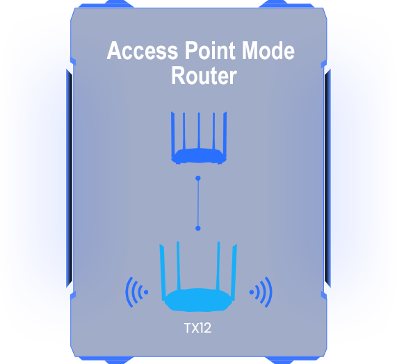 TX12 hỗ trợ 3 chế độ: Router, AP và Repeater. Dễ vận hành và có thể dễ dàng thích ứng với nhiều tình huống Internet khác nhau của bạn.