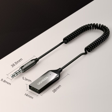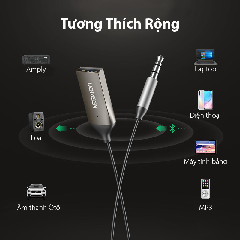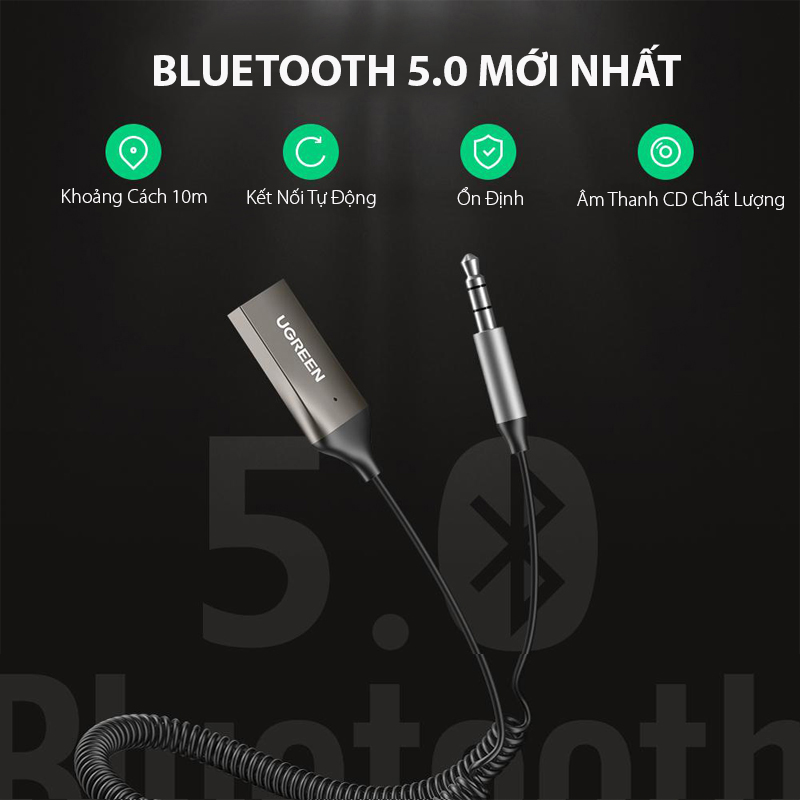 Thiết bị nhận Bluetooth 5.0 công suất 10mW, màu đen đầu ra 3.5mm Ugreen 70601 được sản xuất để nhận tín hiệu bluetooth từ PC, iPhone, iPad, máy tính bảng hoặc máy nghe nhạc MP3 với âm thanh nổi tại nhà của bạn, loa hoặc hệ thống giải trí với cổng 3,5 mm thông qua kết nối Bluetooth 5.0 ở khoảng cách xa.