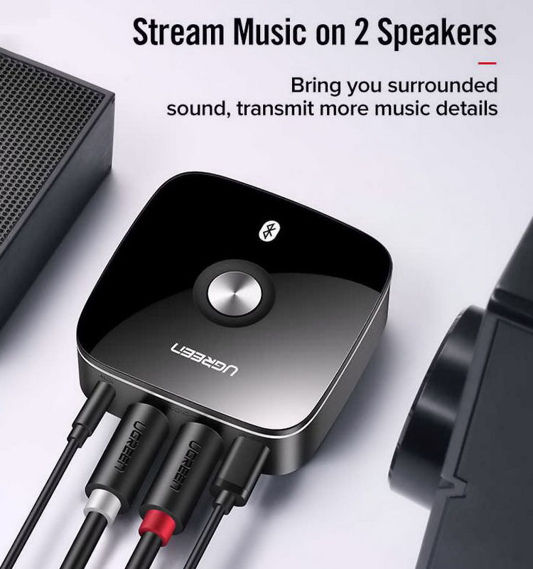 Thiết bị Ugreen 40759 sẽ biến chiếc loa, amply bình thường của bạn thành một thiết bị phát nhạc không dây với chất lượng âm thanh tuyệt hảo. Trải nghiệm công nghệ giải trí tiện lợi ở mọi nơi. Thiết bị tích hợp cổng kết nối RCA bông sen dùng cho Amply và cổng Audio 3.5mm dùng cho loa điện tử và các thiết bị phát nhạc khác.