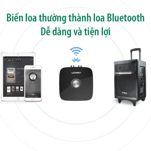 Thiết bị nhận Bluetooth, màu đen hỗ trợ APTX đầu ra 3.5mm và hoa sen Ugreen 40759 là phụ kiện cao cấp dùng để nhận tín hiệu Bluetooth từ PC, iPhone, iPad, máy tính bảng hoặc máy nghe nhạc MP3 với dàn âm thanh nổi tại nhà của bạn, loa hoặc hệ thống giải trí với cổng 3,5 mm và cổng RCA (Bông sen) thông qua kết nối Bluetooth 5.1 ở khoảng cách xa.