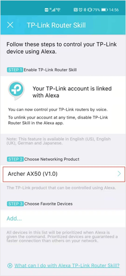 Bật Skill TP-Link Router trên ứng dụng Alexa. Nhấn “Tìm hiểu cách thức” trong trang Tích hợp Alexa để biết thêm chi tiết.