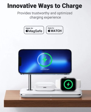 Nếu bạn đã quyết định mua trạm sạc không dây 3 trong 1 (iPhone, tai nghe và Apple Watch) thì Trạm sạc không dây MagSafe 3 trong 1 Ugreen là lựa chọn tốt nhất.