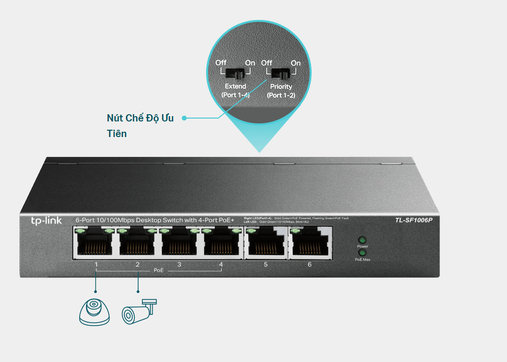 Switch Để Bàn 8 Cổng 10/100Mbps với 4-Cổng PoE