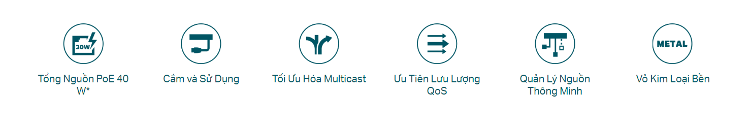Hỗ trợ cấp nguồn POE lên tới 30 W cho mỗi cổng PoE