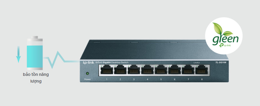 Switch không được quản lý mới nhất của TP-Link sử dụng các công nghệ tiết kiệm năng lượng tiên tiến. Mức tiêu thụ điện năng tự động điều chỉnh theo trạng thái liên kết và chiều dài cáp, cho phép bạn mở rộng mạng mà vẫn đảm bảo giảm thiểu lượng khí thải carbon.