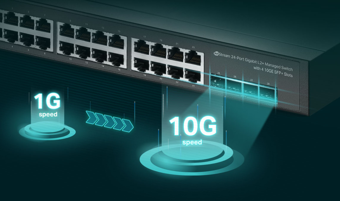 Các khe cắm SFP+ 4×10 Gbps cung cấp hiệu suất chuyển mạch không bị chặn và độ trễ cực thấp, do đó, có thể dễ dàng xây dựng các kết nối nhanh như chớp và đáng tin cậy đến máy chủ và các bộ chuyển mạch khác.