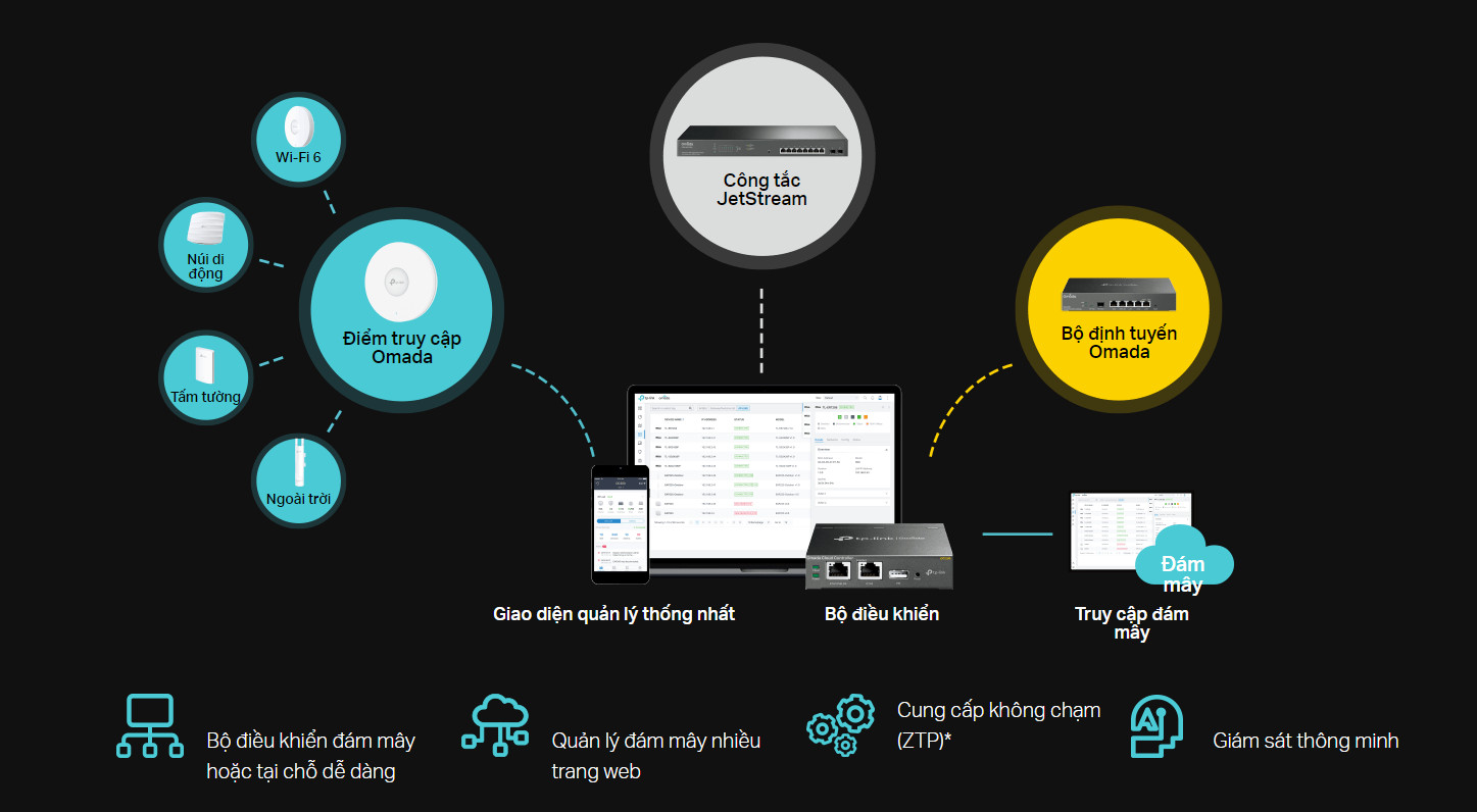 Quản lý tập trung: Truy cập đám mây và ứng dụng Omada để cực kỳ thuận tiện và quản lý dễ dàng.