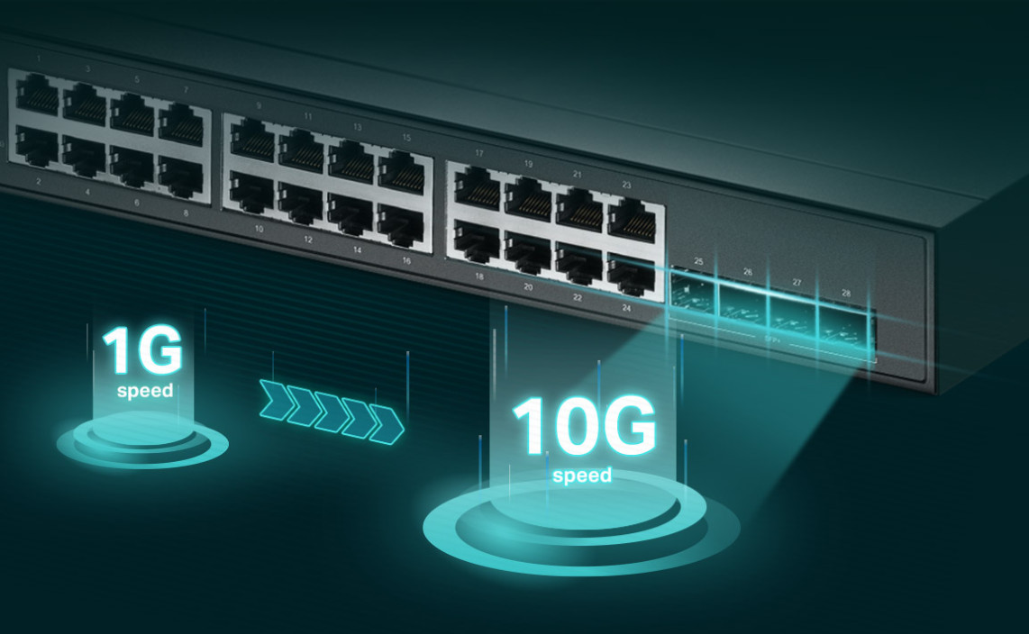 Các khe cắm SFP+ 4×10 Gbps cung cấp hiệu suất chuyển mạch không bị chặn và độ trễ cực thấp, do đó, có thể dễ dàng xây dựng các kết nối nhanh như chớp và đáng tin cậy đến máy chủ và các bộ chuyển mạch khác.