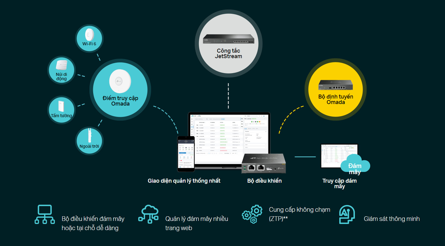 Được tích hợp vào Omada SDN: Cung cấp không chạm (ZTP) **, Quản lý đám mây tập trung và Giám sát thông minh.