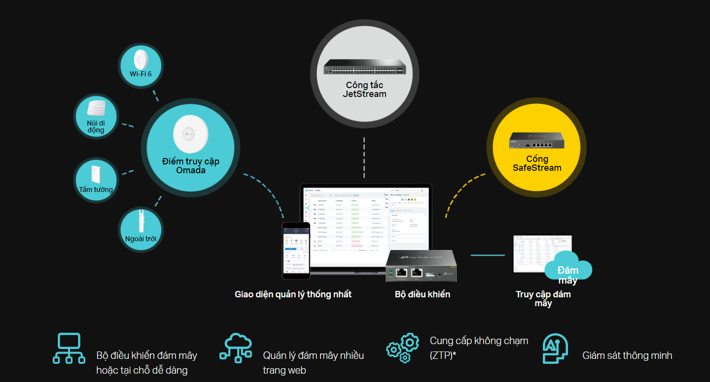 Được tích hợp vào Omada SDN: Quản lý đám mây tập trung và Giám sát thông minh.
