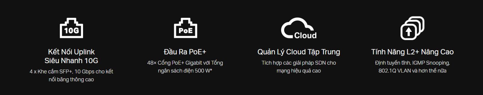 Uplink Siêu Nhanh 10G: Tận hưởng kết nối băng thông cao và khả năng chuyển mạch với 4 khe cắm SFP + 10 Gbps.
