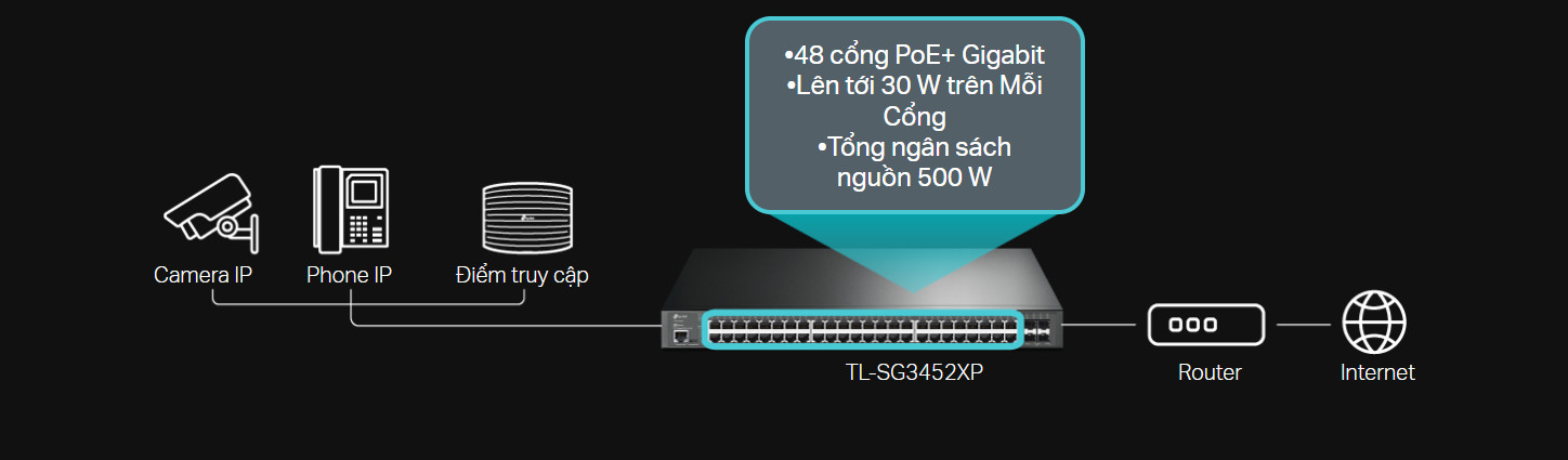 48 Cổng PoE+ Chuyên Dụng (Ngân sách 500 W) Nhiều Ứng Dụng