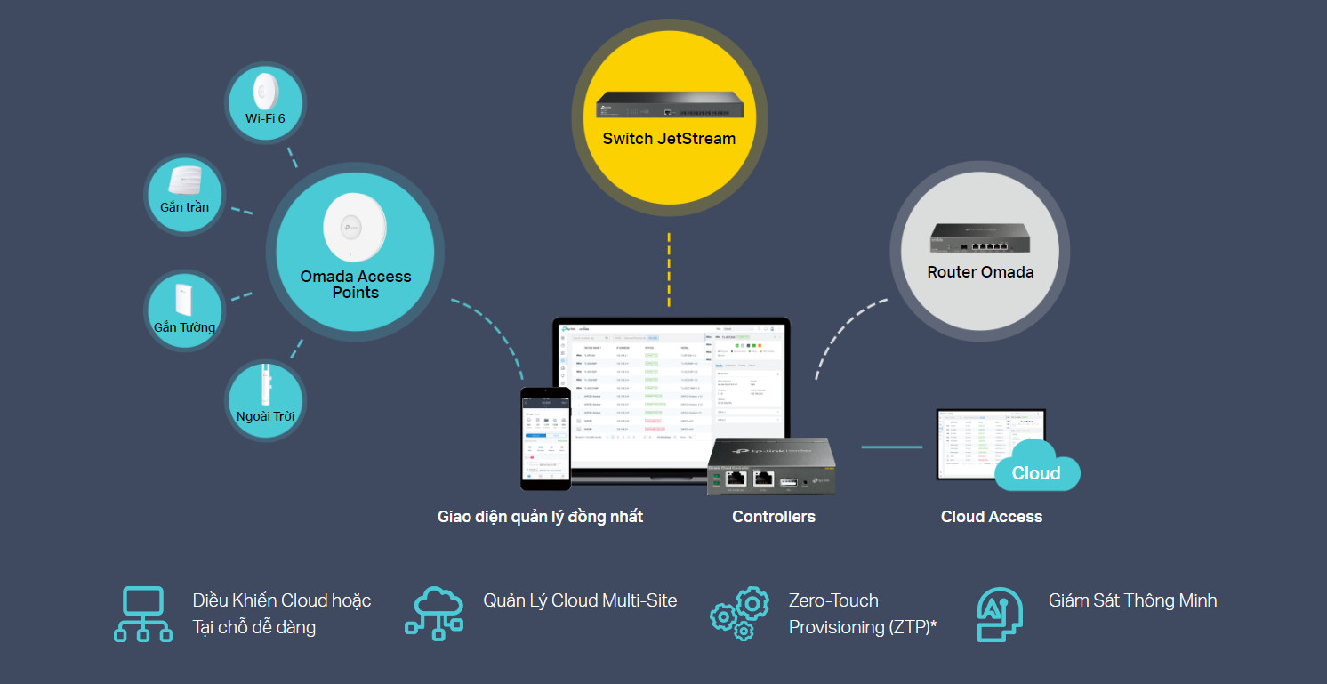 Quản Lý Cloud Tập Trung: Tích hợp vào Omada SDN để truy cập cloud và quản lý từ xa..
