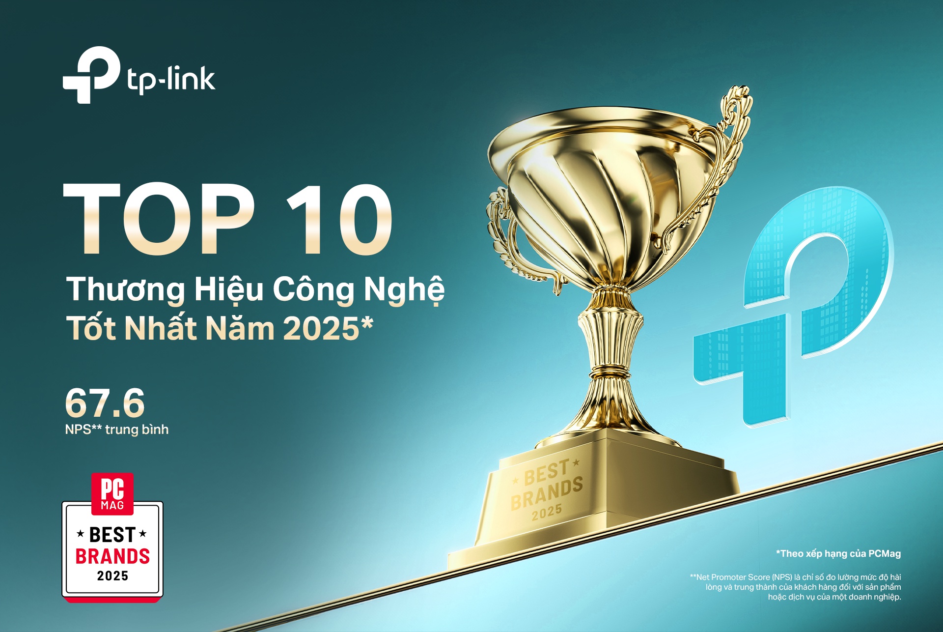 TP-Link, thương hiệu Wi-Fi số 1 thế giới, tự hào được vinh danh trong Top 10 thương hiệu công nghệ tốt nhất năm 2025 theo bảng xếp hạng của PCMag, với vị trí thứ 8. Thành tích này đánh dấu bước tiến quan trọng trong hành trình cải tiến sản phẩm và nâng cao trải nghiệm người dùng của TP-Link trên toàn cầu.
