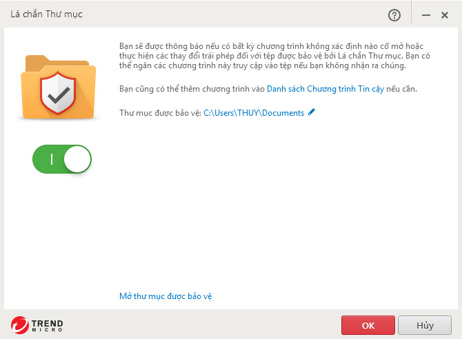 Việc tải phần mềm diệt virus Trend Micro Internet Security 15 (2019) sẽ cung cấp cho bạn công cụ Lá chắn Thư Mục. Lá chắn Thư Mục bổ sung thêm lớp bảo vệ bằng cách hạn chế truy cập tới các tệp trong thư mục được bảo vệ.