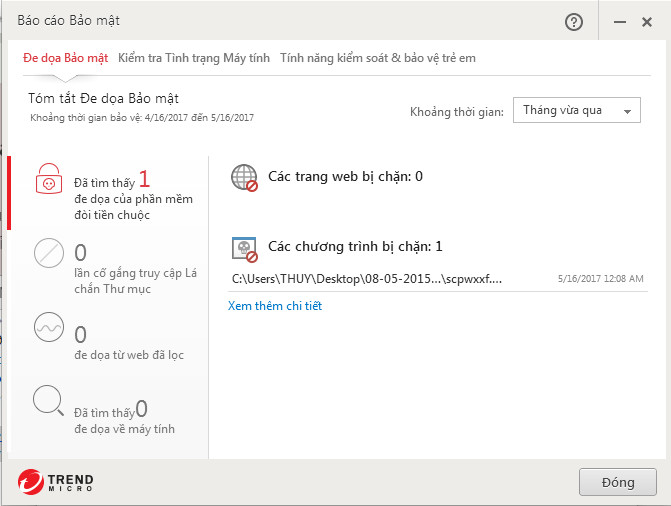 Tải phần mềm diệt virus Trend Micro Internet Security 15 (2019) để có thể dễ dàng nhận báo cáo.