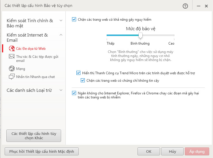 Khi dùng phần mềm Trend Micro, bạn sẽ được bảo vệ khỏi các mối hiểm họa từ website độc hại, tệp tin đính kèm từ email và tin nhắn. Đây là mức độ an ninh được đề nghị để bảo vệ bạn khỏi lừa đảo trực tuyến đánh cắp các thông tin tín dụng hoặc các thông tin tài chính. Bạn sẽ nhận được các cảnh báo của các trang web không an toàn và chặn không cho truy cập vào chúng. Tải phần mềm diệt virus tốt nhất Trend Micro Internet Security 15 (2019) ngay trên trang này để giúp bạn ngăn ngừa các mối nguy hiểm tiềm ẩn.
