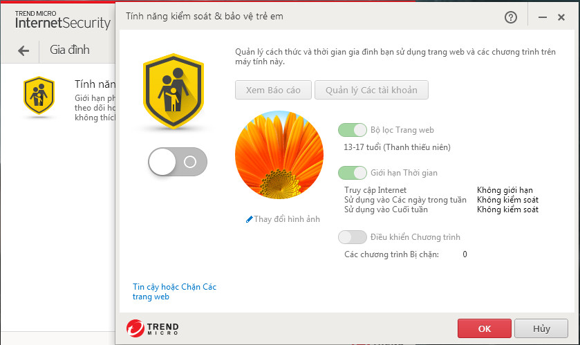 Bạn sẽ dễ dàng bảo vệ những đứa trẻ của bạn 24/7 khỏi các trang web không phù hợp, kiểm soát các ứng dụng mà chúng có thể sử dụng, giới hạn thời gian sử dụng Internet, và xem được các báo cáo chi tiết về những gì chúng làm trên trực tuyến với Trend Micro bảo vệ trẻ em. Một loạt các thiết lập được đề nghị bởi các chuyên gia an toàn trực tuyến cho các nhóm tuổi khác nhau hoặc bạn cũng có thể tùy chỉnh các thiết lập cho riêng bạn.