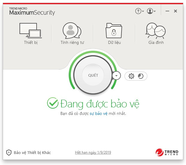 Từ trình quản lý chính của Trend Micro Maximum Security 15 (2019), bạn có thể dễ dàng quét virus, cập nhật được báo cáo tình trạng an ninh của máy theo từng phút, và sử dụng được các nút đường tắt đến các tính năng như trình quét riêng tư Facebook.Bạn cũng có thể xem trạng thái bảo vệ việc bảo vệ, bao gồm chi tiết về phần mềm, trợ giúp trực tuyến, và thông tin tài khoản..