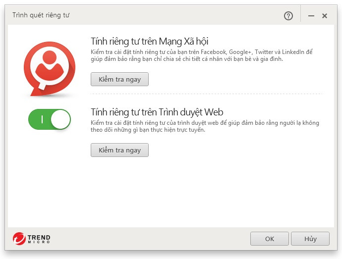 Trend Micro Maximum Security 15 (2019) sẽ xác định những thiết lập liên quan đến vấn đề riêng tư của bạn. Những tính năng này giúp bạn kiểm soát được những ứng dụng có thể truy cập thông tin của bạn, những người có thể gắn thẻ (tag) bạn, xem các bức ảnh của bạn và nhiều hơn nữa.