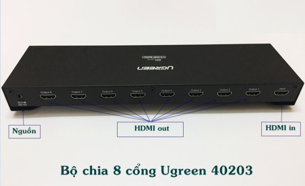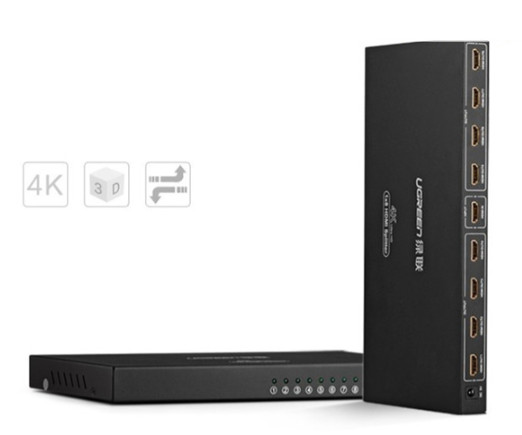 Ugreen 40203 Màu Đen Bộ chia HDMI 1 ra 8 hỗ trợ phân giải FULL HD là một thiết bị cho phép người dùng kết nối bất kỳ thiết bị phát hình ảnh kỹ thuật số chất lượng HD, chẳng hạn như: Android tv box, DVD, truyền hình vệ tinh, PC, Xbox, PS3 và nhiều hơn nữa ra 10 màn hình hiển thị HDMI cùng lúc với chất lượng hình ảnh, âm thanh sắc nét sống động với độ phân giải cao.