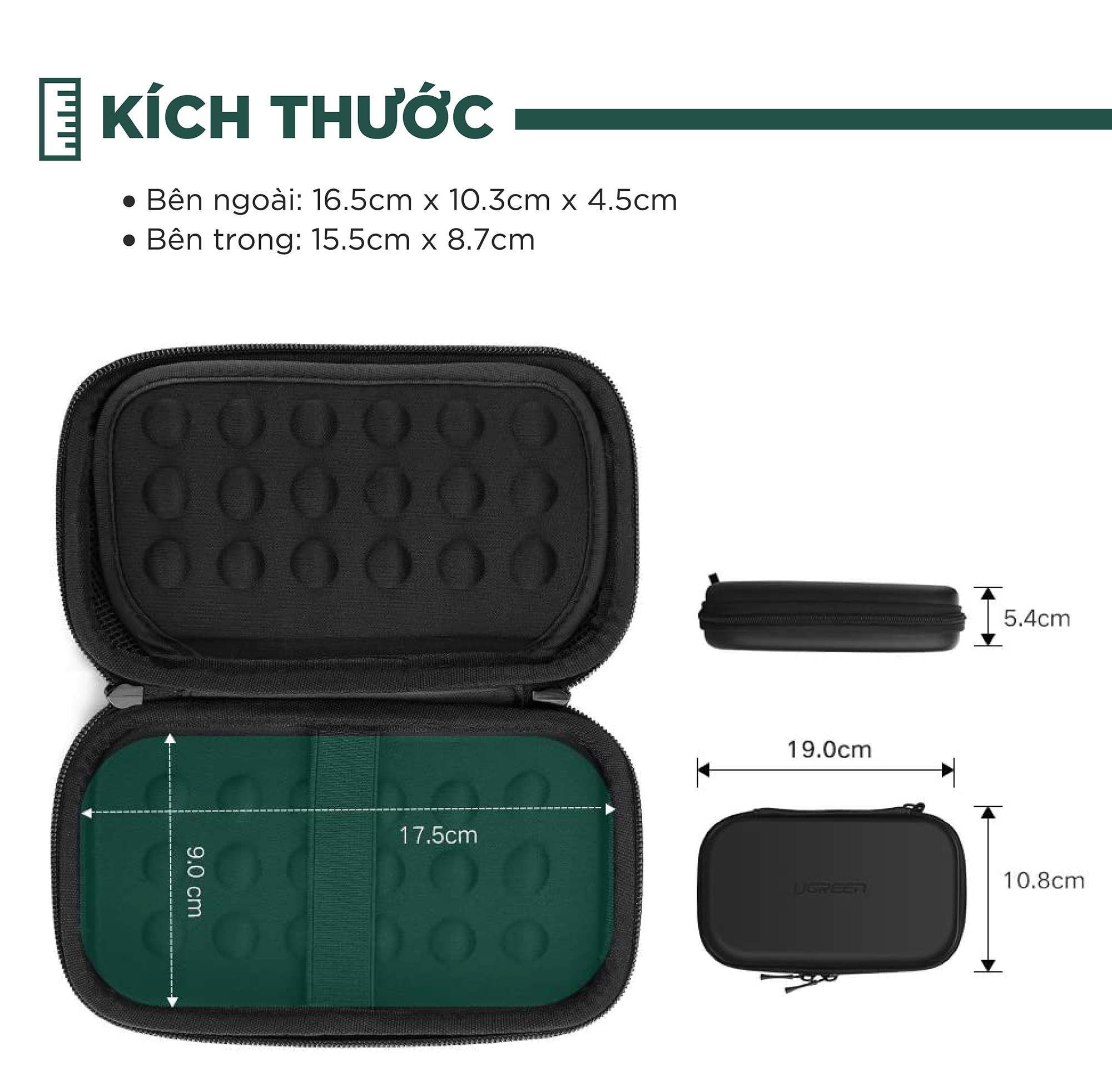 4. Kích thước bên trong: 6,29x3,42 in (160mm x 87mm)