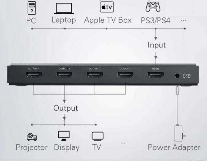 Ugreen 50708 Bộ chia HDMI 1 ra 4 cổng hỗ trợ HDMI 2.0 CM187 là một thiết bị cho phép người dùng kết nối bất kỳ thiết bị phát hình ảnh kỹ thuật số chất lượng HD, chẳng hạn như: Android tv box, DVD, truyền hình vệ tinh, PC, Xbox, PS3 và nhiều hơn nữa ra 10 màn hình hiển thị HDMI cùng lúc với chất lượng hình ảnh, âm thanh sắc nét sống động với độ phân giải cao.