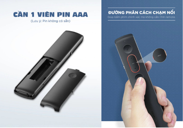 Ugreen 60327 - Bút trình chiếu Laser không dây cao cấp là thiết bị dùng để khiển từ xa nội dung thuyết trình trên màn hình máy tính, máy chiếu phục vụ cho các cuộc họp, hội nghị...