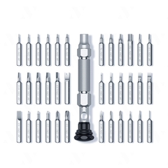 1. Bộ sản phẩm bao gồm: tay cầm bằng hợp kim nhôm, đầu nối từ tính, và 36 đầu vít khác nhau