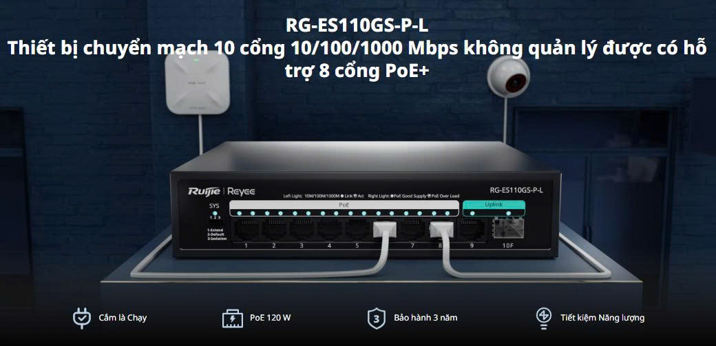 Cắm là Chạy | PoE 120 W | Bảo hành 3 năm | Tiết kiệm Năng lượng