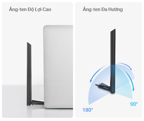 Ăng-ten độ lợi cao có khả năng kết nối xa hơn với router và phạm vi tín hiệu chính xác hơn, duy trì kết nối không dây nhanh và ổn định hơn.