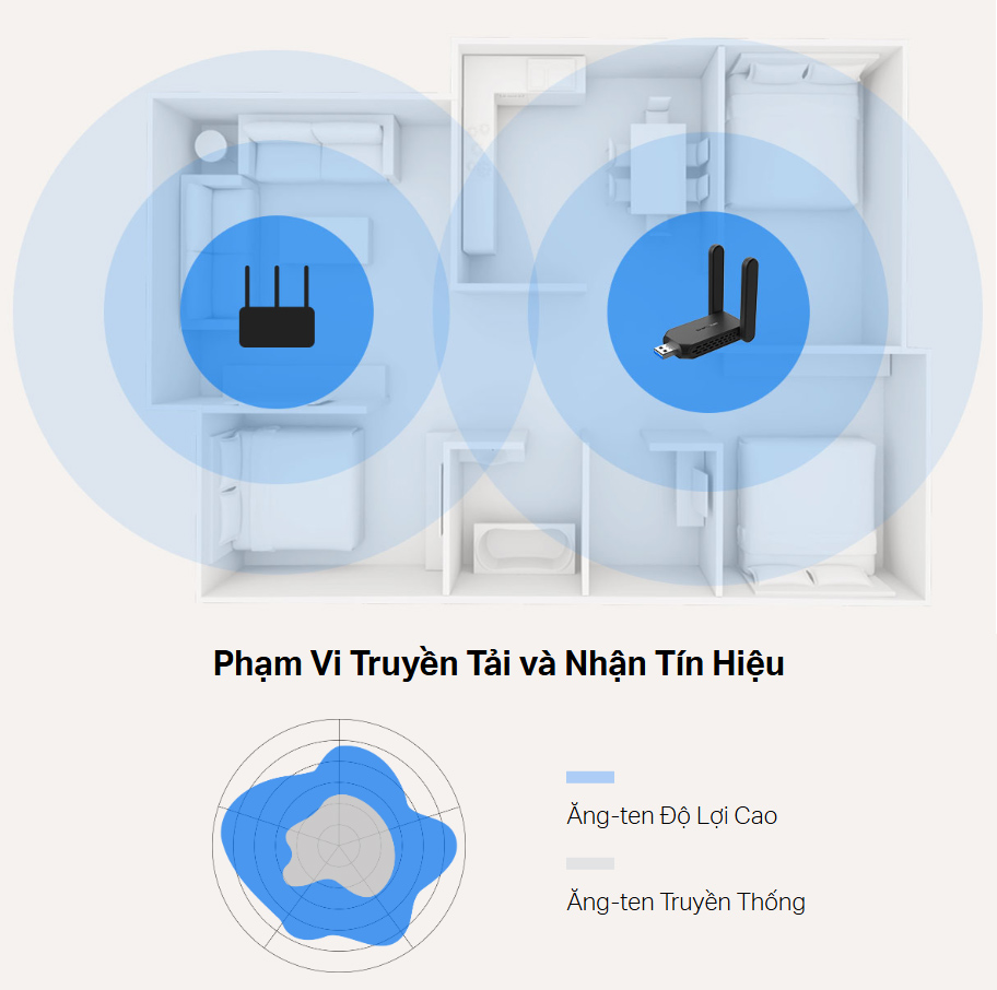 - Phạm Vi Phủ Sóng Rộng Hơn — Hai Ăng-ten hiệu suất cao