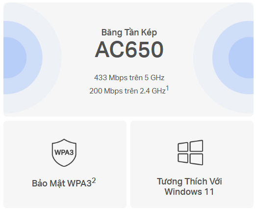- Tốc Độ Wi-Fi Băng Tần Kép — Tốc độ lên đến 433 Mbps (5 GHz) + 200 Mbps (2.4 GHz)¹