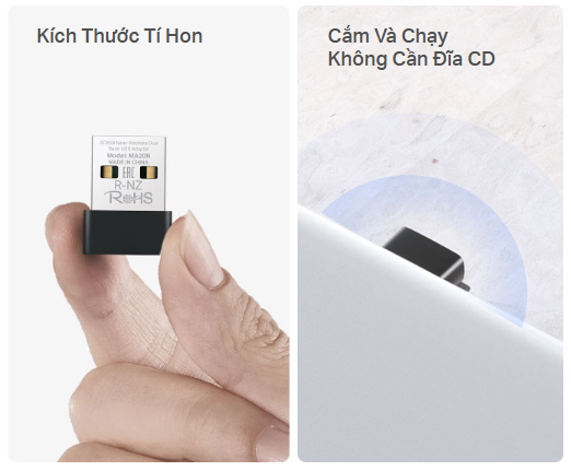 - Kích Thước Nano — Giải pháp nhỏ gọn và tiện lợi để giúp thiết bị của bạn kết nối không dây. Nhỏ hơn nhiều so với USB thông thường.