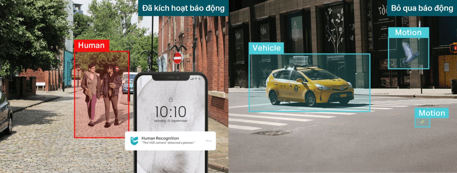 Nhận diện Người & Phương tiện : Phân biệt người và phương tiện với các đối tượng khác để bạn nhận được thông báo sự kiện chính xác hơn.
