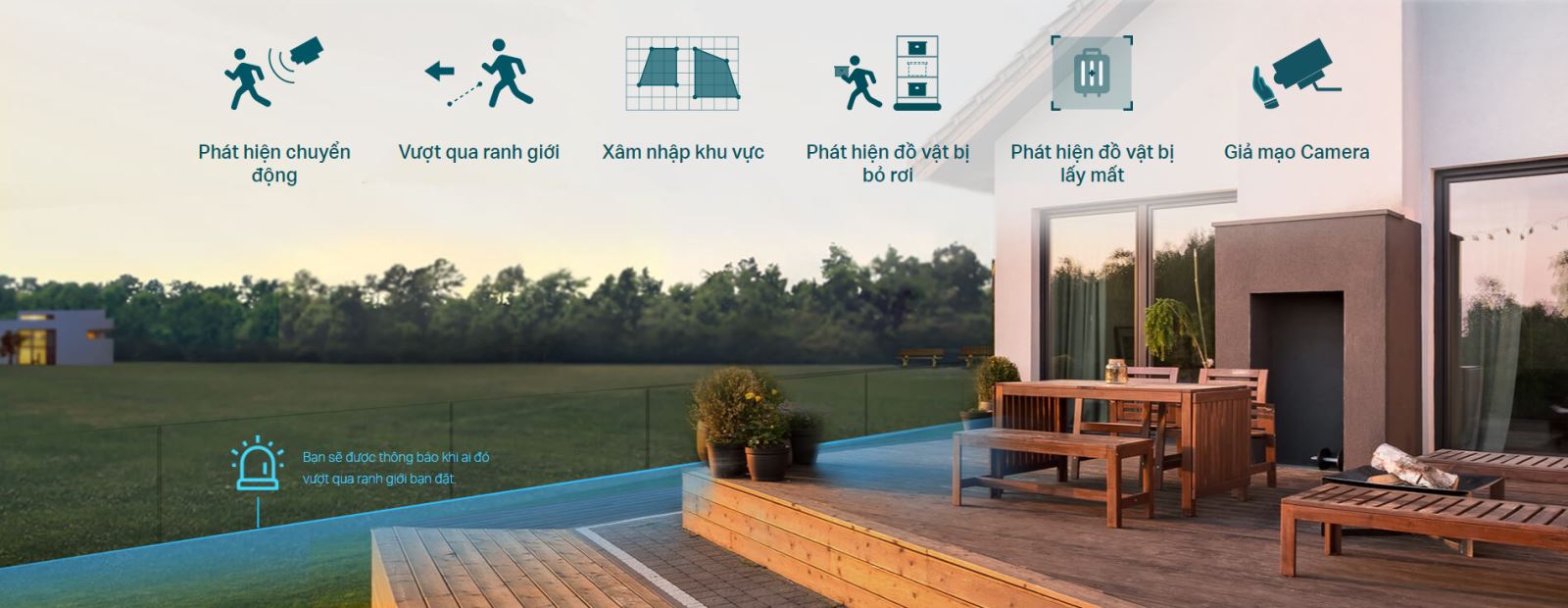 Phát hiện thông minh: Nhận thông báo và kiểm tra khi ai đó vượt qua ranh giới, đi vào khu vực bạn đã đặt, cản trở camera hoặc lấy/bỏ rơi đối tượng.