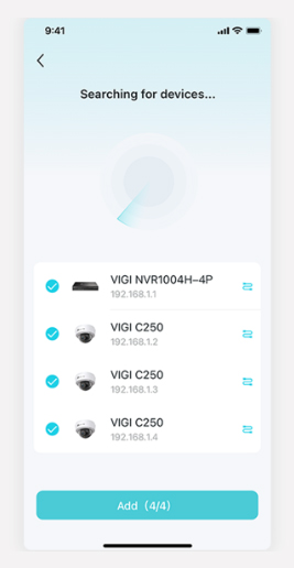 Ứng dụng VIGI tự động phát hiện thiết bị trong cùng một mạng LAN và thêm chúng theo lô để thiết lập dễ dàng. Điều này tăng tốc độ hiệu quả lắp đặt và giảm chi phí nhân công.