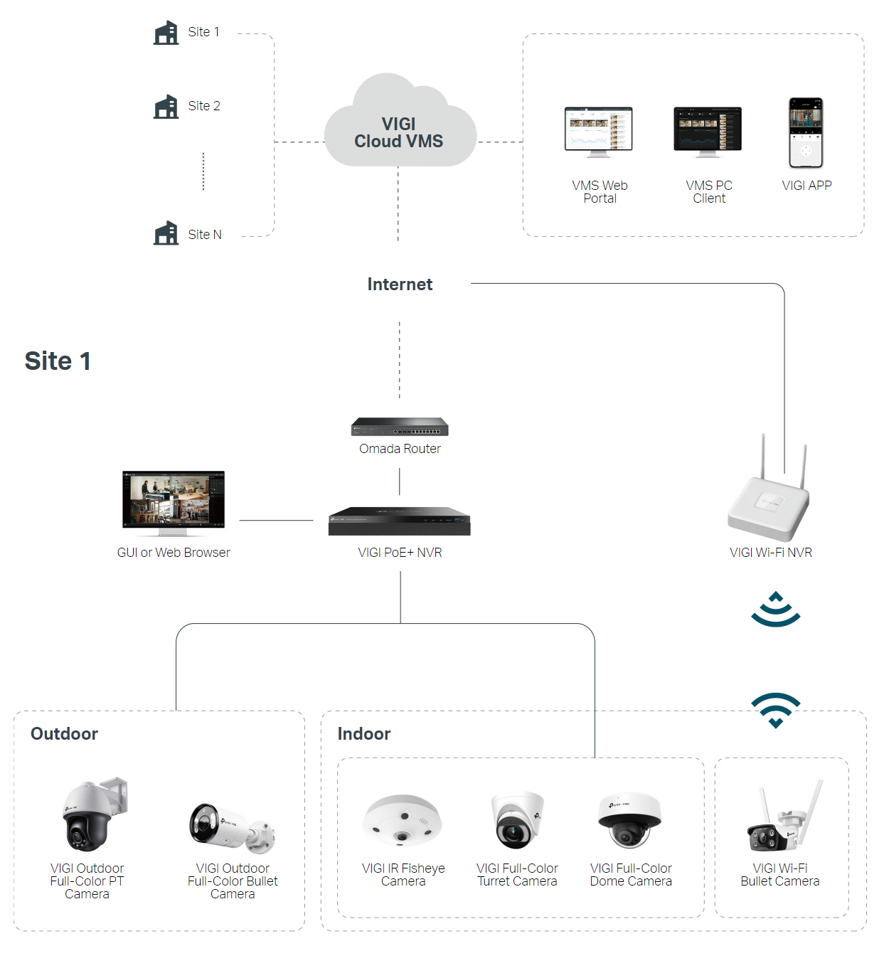 †Vui lòng truy cập https://www.tp-link.com/en/vigi-cloud-video-management-system/product-list/ để xác nhận kiểu máy nào tương thích với VIGI Cloud VMS.