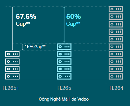 - H.265+: Nén kích thước video mà không làm giảm chất lượng video, giảm bớt tải mạng và tiết kiệm dung lượng ổ đĩa.