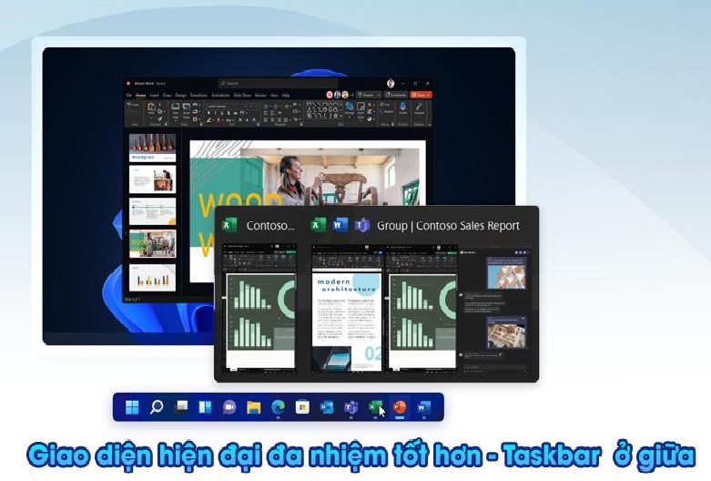 - Start menu được đưa vào giữa, người dùng có thể truy cập nhanh vào những nội dung và ứng dụng mà họ quan tâm cũng như xem các tệp mà họ đã xử lý gần đây nhất, bất kể trước đấy họ truy cập trên thiết bị nào.