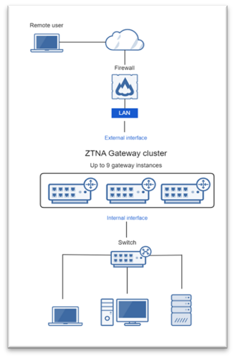 ZTNA Gateway là một thành phần máy ảo dùng để xác thực người dùng và xác nhận tình trạng thiết bị truy cập vào tài nguyên và ứng dụng bên trong doanh nghiệp. Là thành phần chính nhận cấu hình và chính sách từ Sophos Central, đóng vai trò là người đại diện cho các tài nguyên và ứng dụng kết nối đến đúng người dùng. ZTNA gateway được cài đặt miễn phí và dễ dàng như một máy ảo trên Vmware hoặc Amazon Web Services.